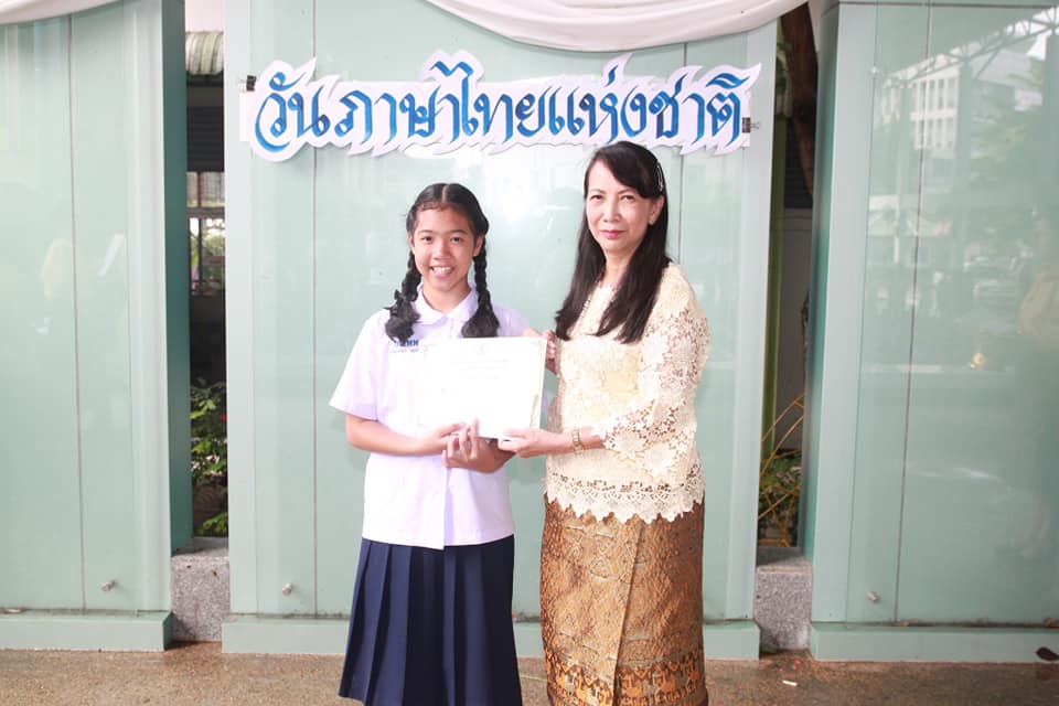 | เด็กหญิงพริมา บุญเพ็ชร นักเรียนระดับชั้นประถมศึกษาปีที่ 6/2 ได้รับรางวัลชมเชยการแข่งขันเขียนเรียงความ เนื่องในงานวันภาษาไทยแห่งชาติ จัดโดยสำนักวัฒนธรรม การท่องเที่ยวและกีฬา ร่วมกับสโมสร ยุวกวี ชมรมเทพศรีกวีศิลป์ แข่งขันเมื่อวันที่ 25 กรกฎาคม 2561 |