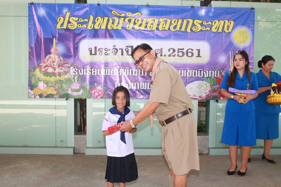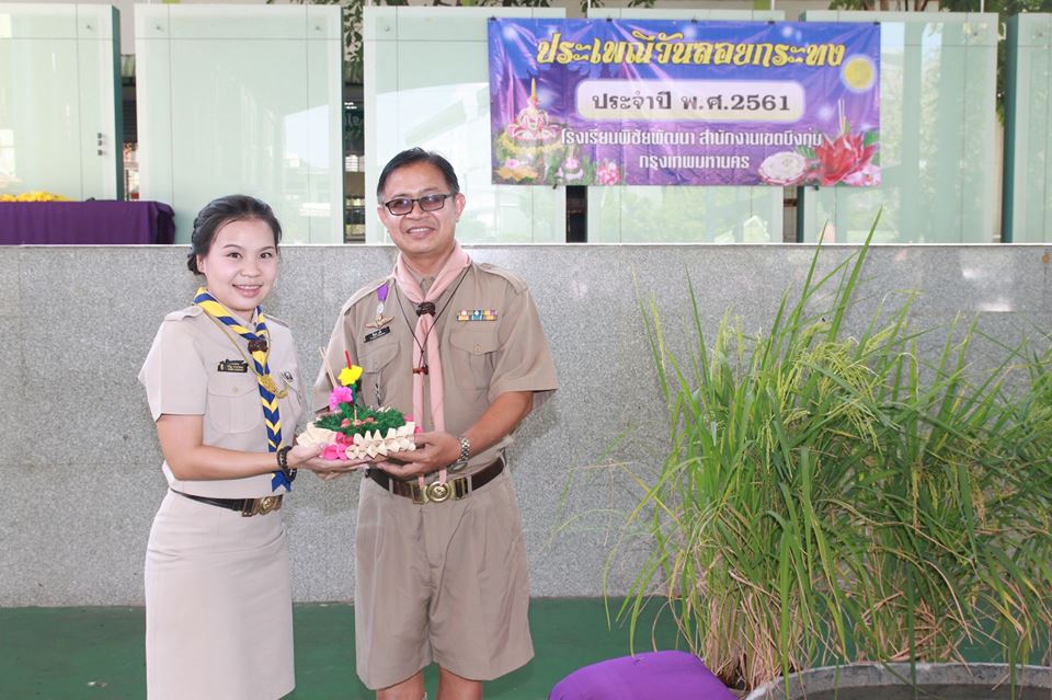 | นางพัชรินทร์ ศิริสุข ผู้อำนวยการสถานศึกษาได้มอบหมายนายปัญญา ภูมั่น รองผู้อำนวยการสถานศึกษาเป็นประธานในกิจกรรมประเพณีวันลอยกระทง ประจำปีการศึกษา 2561 เมื่อวันที่ 22 พฤศจิกายน 2561 ณ โรงเรียนพิชัยพัฒนา โดยทางโรงเรียนได้จัดกิจกรรมเพื่อส่งเสริมให้นักเรียนรู้คุณค่าการรักษาประเพณีและภูมิปัญญาไทย |