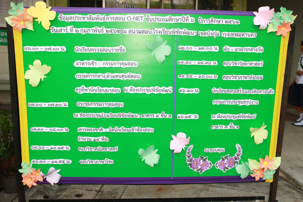 สอบ O-NET 2561 ณ สนามสอบโรงเรียนพิชัยพัฒนา