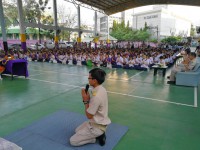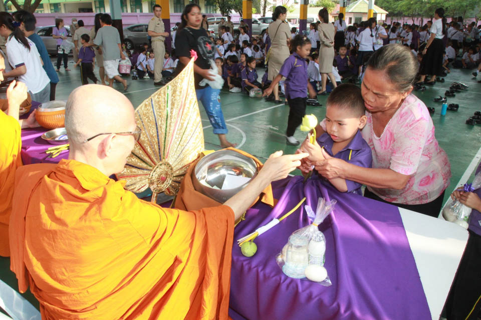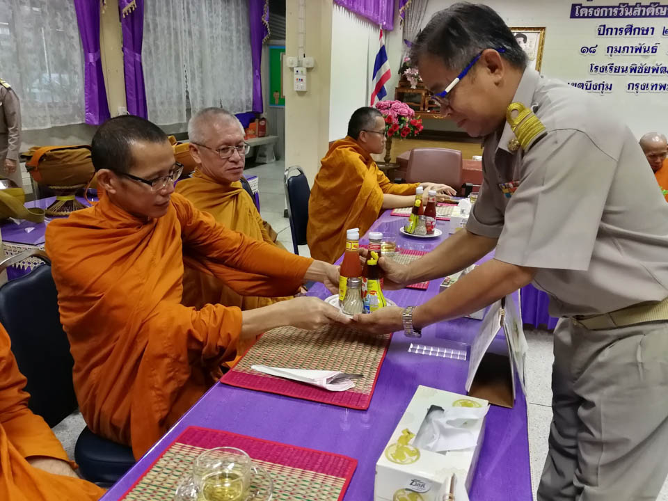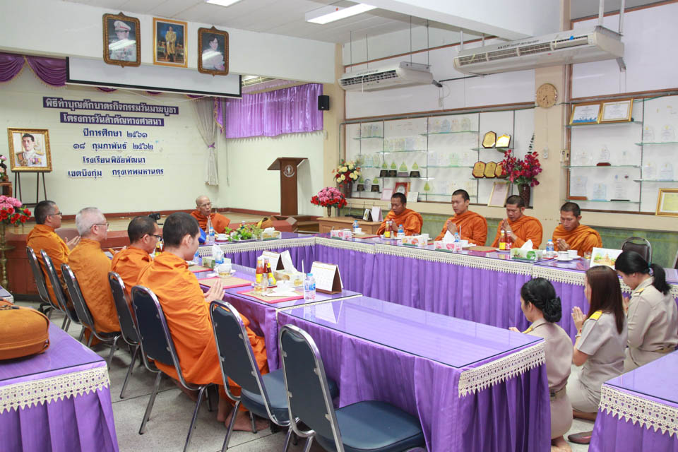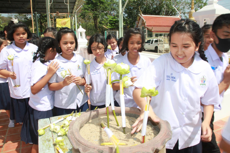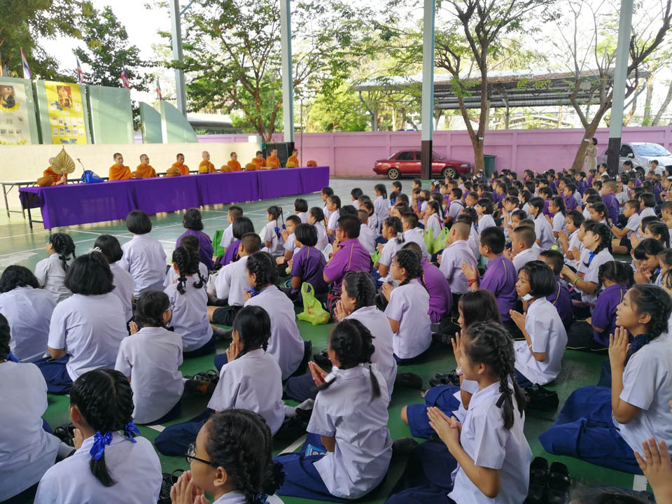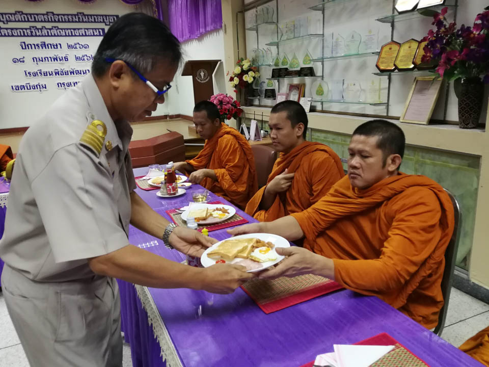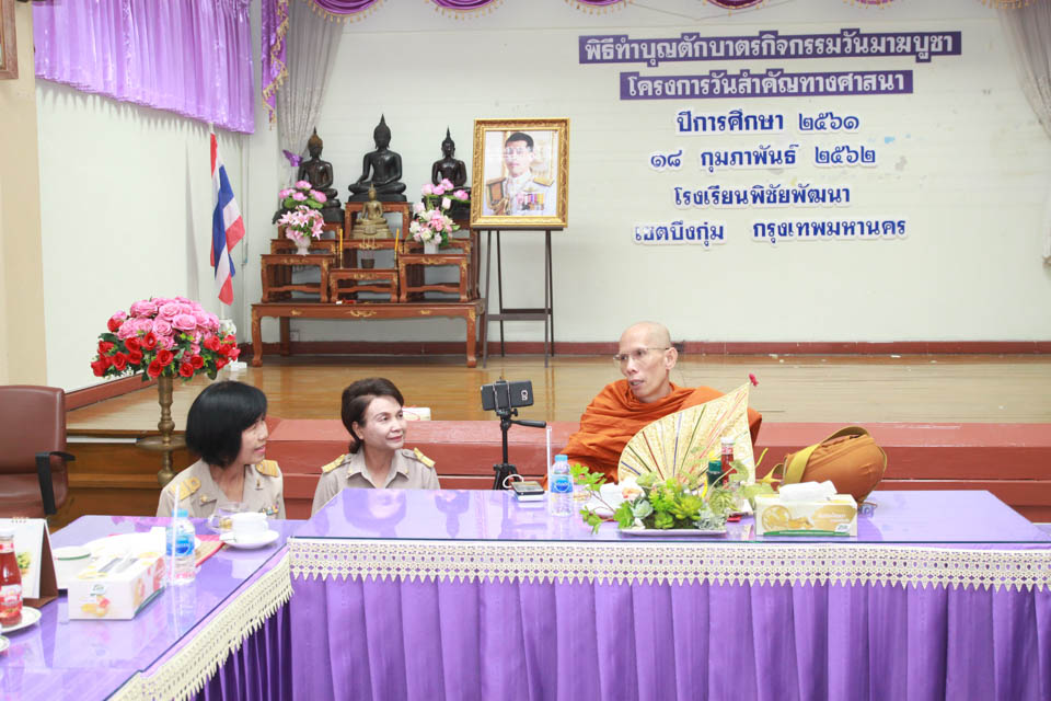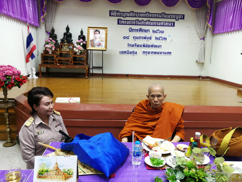 วันจันทร์ที่ 18 กุมภาพันธ์ 2562 นางพัชรินทร์ ศิริสุข ผู้อำนวยการสถานศึกษา มอบหมายให้นายปัญญา ภูมั่น รองผู้อำนวยการโรงเรียนพิชัยพัฒนาเป็นประธานในกิจกรรมทำบุญวันมาฆบูชา โดยกิจกรรมช่วงเช้าถวายภัตตาหารเช้าแด่พระสงฆ์ จำนวน ๙ รูป จากนั้นนักเรียน ครู และผู้ปกครอง ร่วมกันทำบุญตักบาตรข้าวสารอาหารแห้งแด่พระสงฆ์ พร้อมรับฟังสัมโมทนียกถา รับพร เวลา 13.00 น. ทางโรงเรียนได้นำนักเรียนชั้นประถมศึกษาปีที่ 6 ไปเวียนเทียนรอบพระอุโบสถ ณ วัดพิชัย โดยมีวัตถุประสงค์เพื่อให้นักเรียนได้เรียนรู้ การปฏิบัติตนในการเป็น พุทธศาสนิกชนที่ดีหัวใจแห่งพระพุทธศาสนา หรือ "โอวาทปาฏิโมกข์" ที่พระพุทธองค์ทรงประทานไว้ในวันมาฆบูชาคือ"ทำความดี ละเว้นความชั่ว ทำจิตใจให้บริสุทธิ์" |