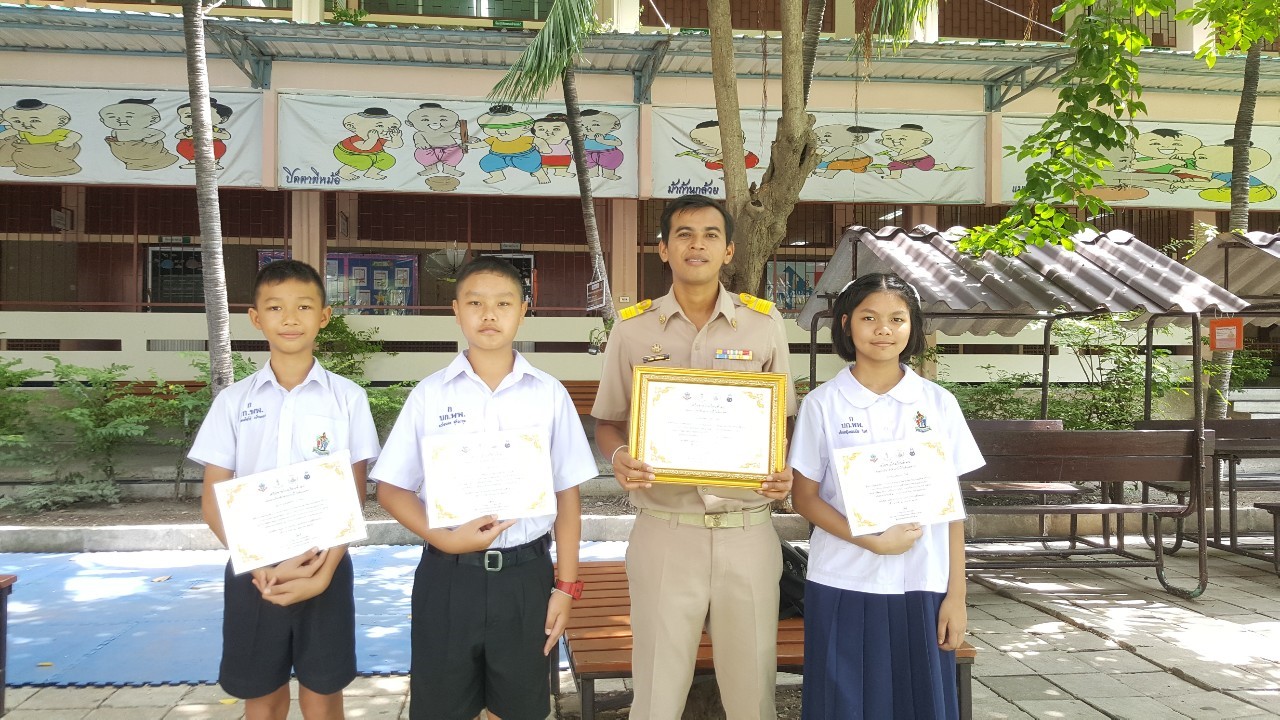 2. รางวัลชนะเลิศการประกวดโครงงานวิทยาศาสตร์ ระดับชั้นประถมศึกษาปีที่ 4-6 โครงงาน ถังดักไขมันเพื่อสิ่งแวดล้อม ระดับชั้นประถมศึกษาปีที่ 6 ครูที่ปรึกษา ได้แก่ ครูมงคล เดยังรัมย์