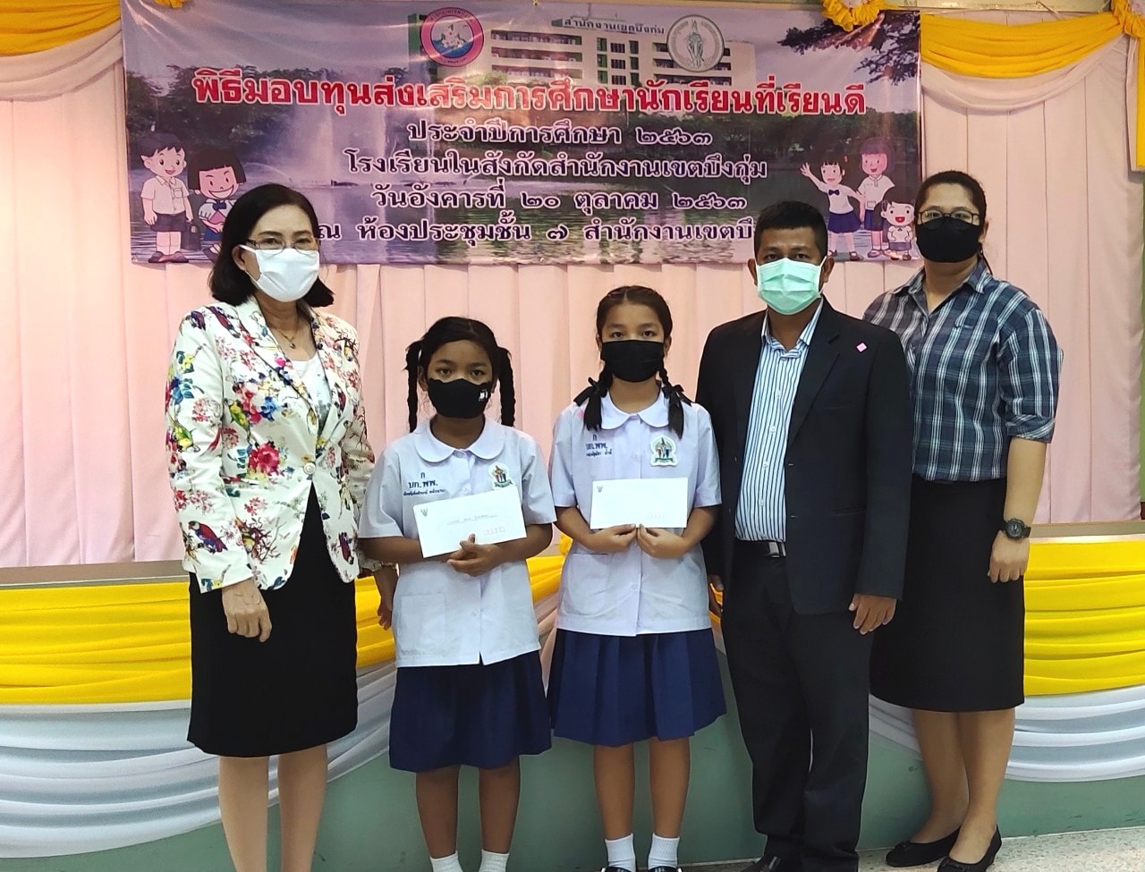 พิธีมอบทุนส่งเสริมการศึกษานักเรียนที่เรียนดี ปีการศึกษา 2563 ณ ห้องประชุมชั้น 7 สำนักงานเขตบึงกุ่ม โรงเรียนพิชัยพัฒนาได้รับทุนจำนวน 2 ทุน